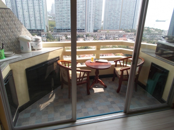 equipped balcony kitchen with sea and inland views (with stove, oven,